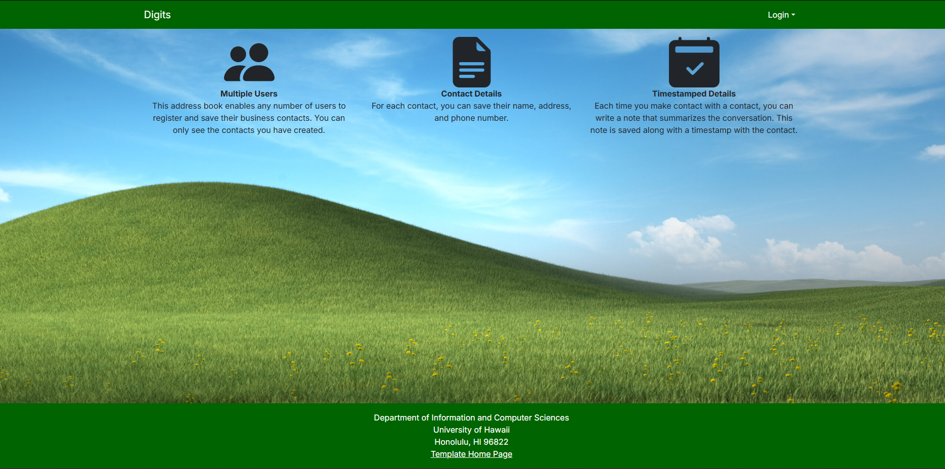 Landing Page When you first bring up the application, you will see the landing page that provides a brief introduction to the capabilities of Digits: